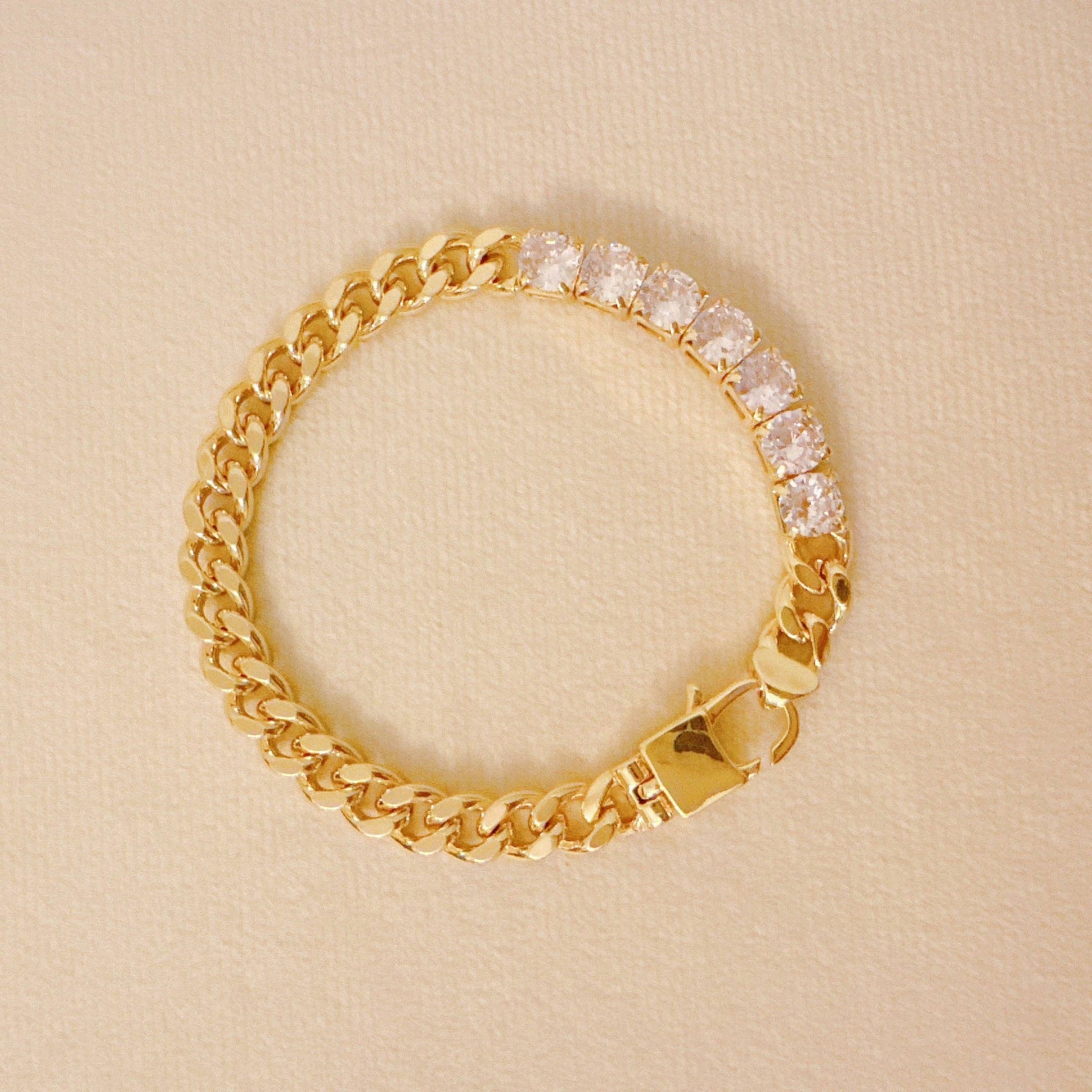 Add a touch of modern glam to your wrist with our City Glam Chain Bracelet. The sparkling stones and cuban chain create a chic and stylish look that's perfect for any occasion. Elevate your jewelry game with this sophisticated piece.