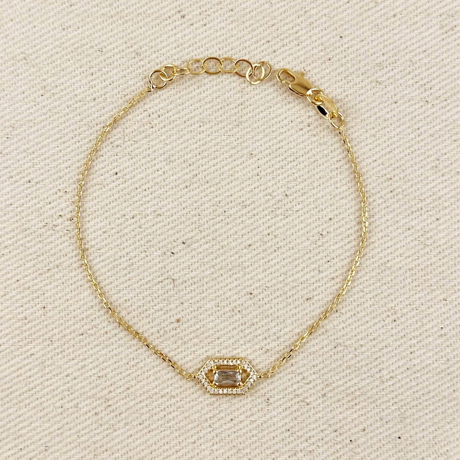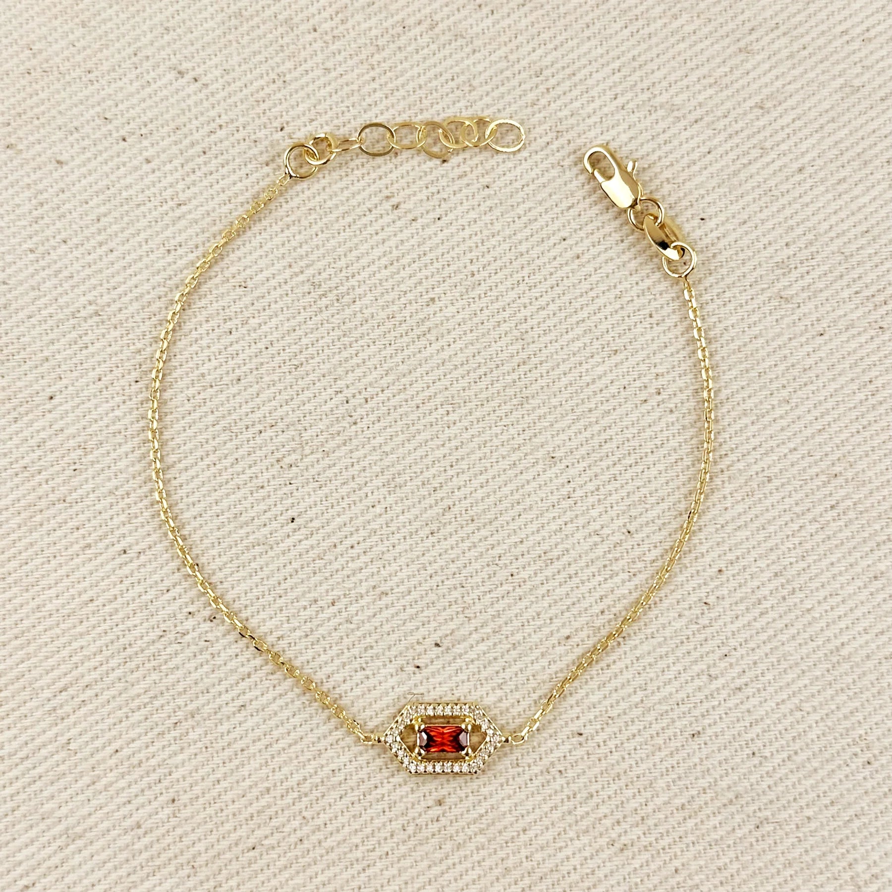 This stunning 18k Gold Filled Birthstone Bracelet showcases a vibrant collection of colorful cubic zirconia stones, beautifully set in an elegant, decorative setting. Each stone is thoughtfully chosen for its brilliance and rich color, representing the twelve months of the year in perfect harmony. Intricate metalwork and shimmering clear CZ accents enhance the beauty of every birthstone, creating a refined and eye-catching design.