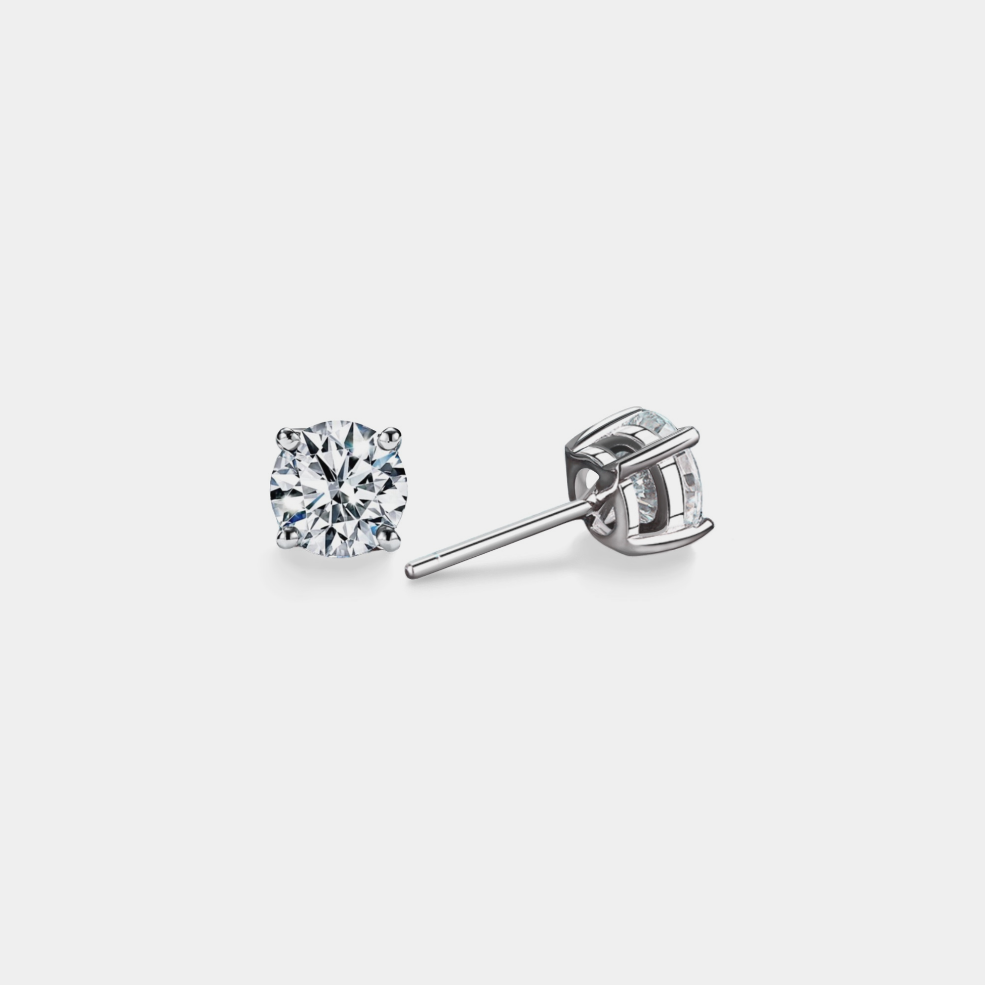 Make a statement with the Riley Studs, showcasing stunning certified moissanite stones with this pair featuring a brilliant 2 carat size. Crafted from solid 925 sterling silver and finished with hypoallergenic 950 platinum plating, these earrings combine luxurious sparkle with lasting comfort. Each stone boasts D color and VVS1 clarity, delivering exceptional brilliance and fire.