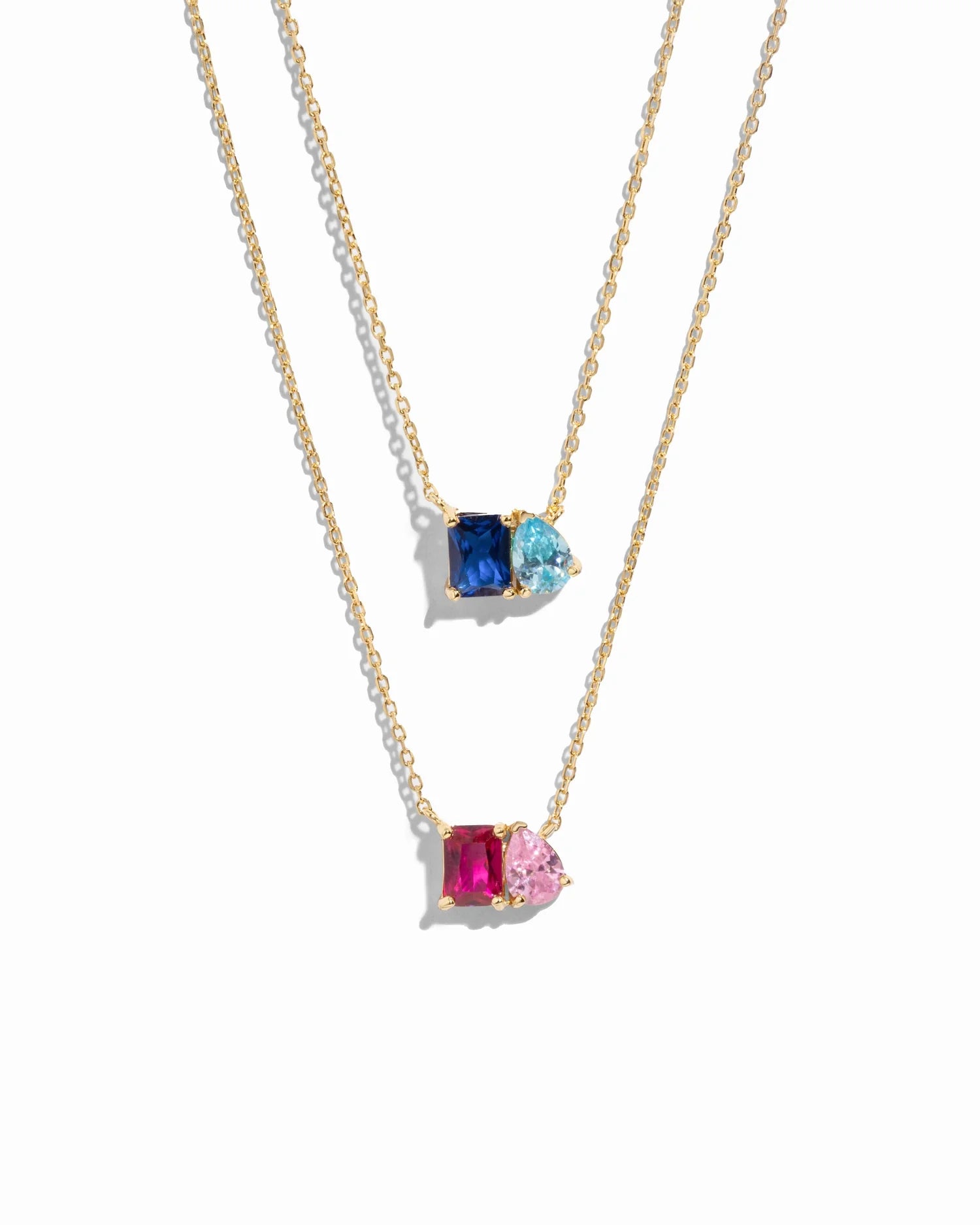 Two stones, one story. ✨ The Toi et Moi Custom Birthstone Necklace features a timeless pairing of a pear-cut stone and an emerald-cut stone, symbolizing love, connection, and individuality. Thoughtfully designed to feel both personal and classic, this delicate pendant is made to reflect your unique story. Choose meaningful birthstones—or select the same stone twice—for a look that’s entirely your own.
